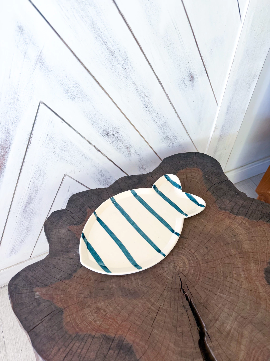 Bandeja Grande Pez Rayas Finas Verde Turquesa