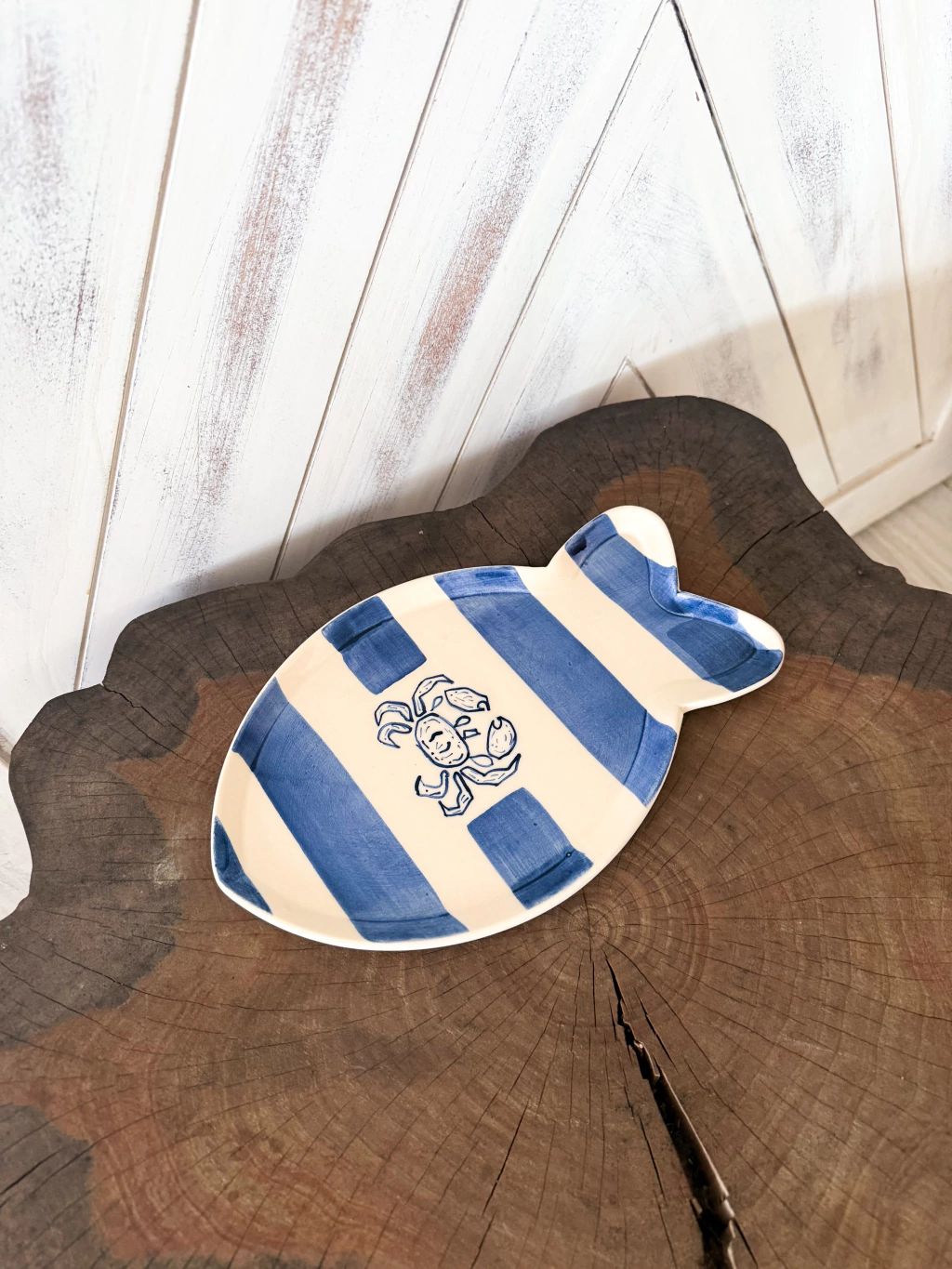 Bandeja Pez Grande Rayas Anchas y Cangrejo Azul Marino