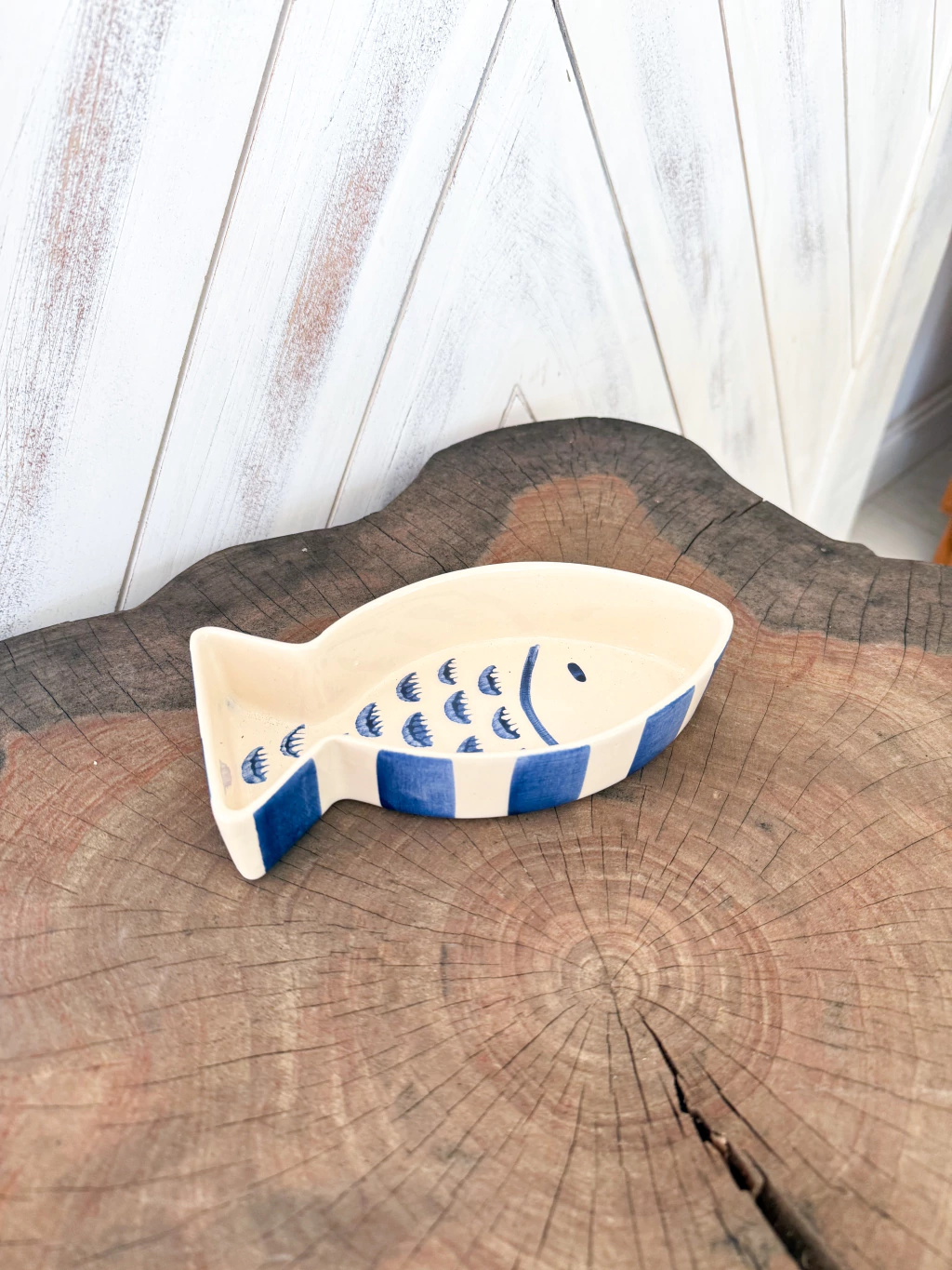 Cuenco Pez Rayas Anchas Y Detalles de Pez Azul Marino