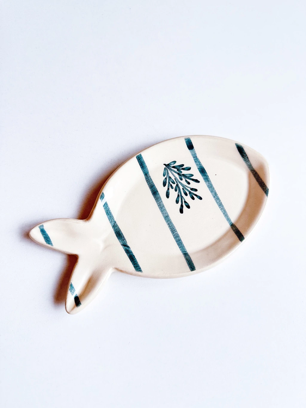 Pieza de cerámica realizada y pintada a mano.