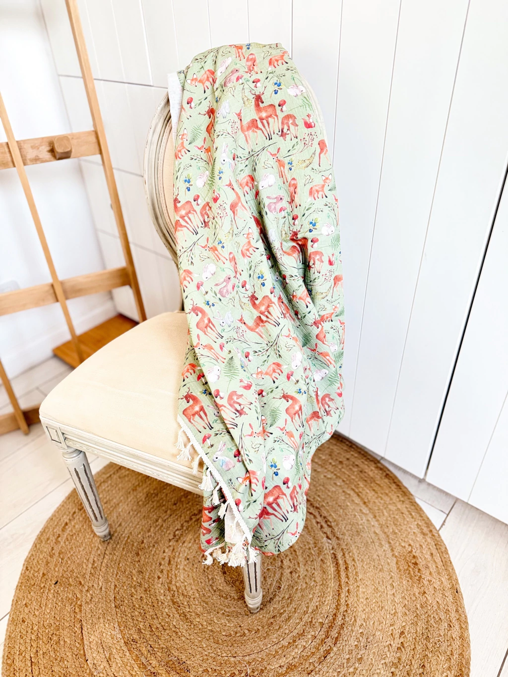 Es ideal para las primeras infancias, para bebés y para niños, puede utilizarse como mantita, lona, pie de cama y decorativa para habitación de niños.