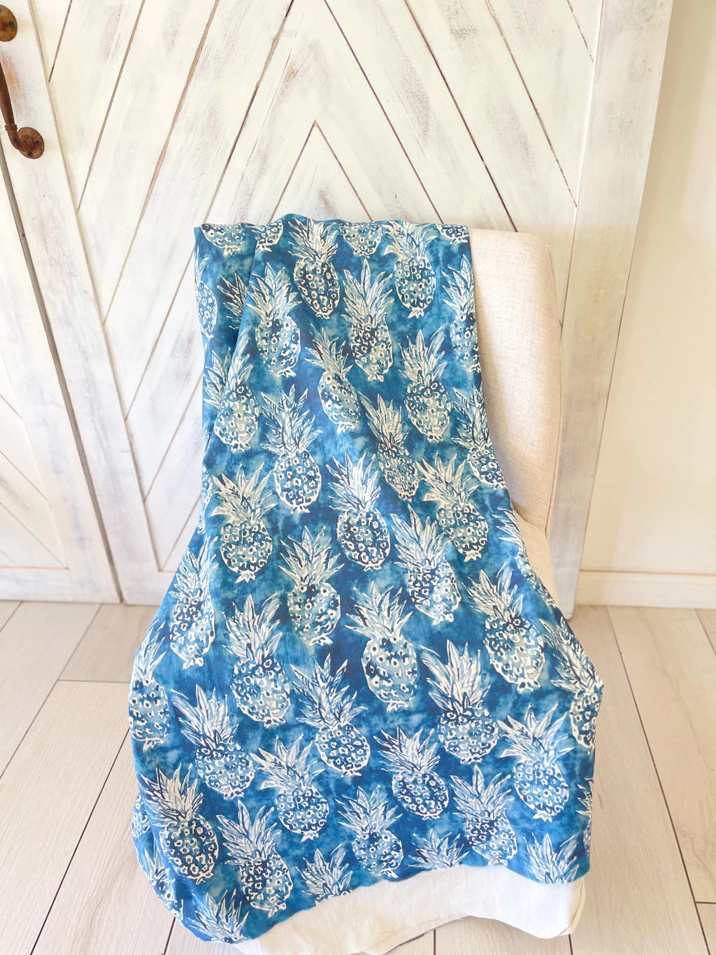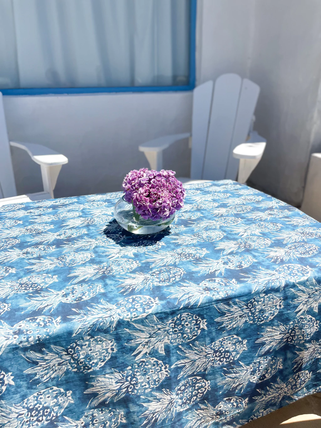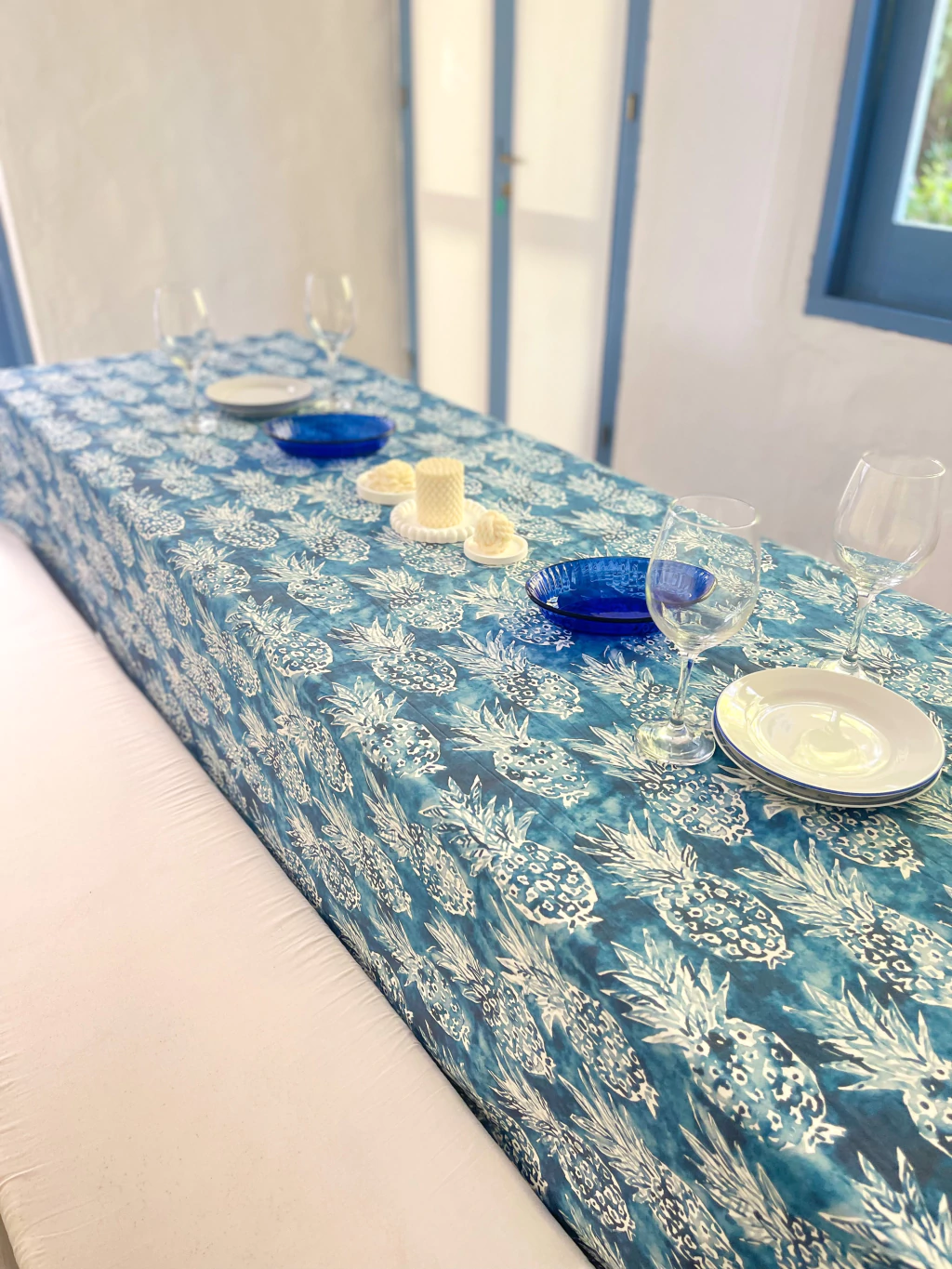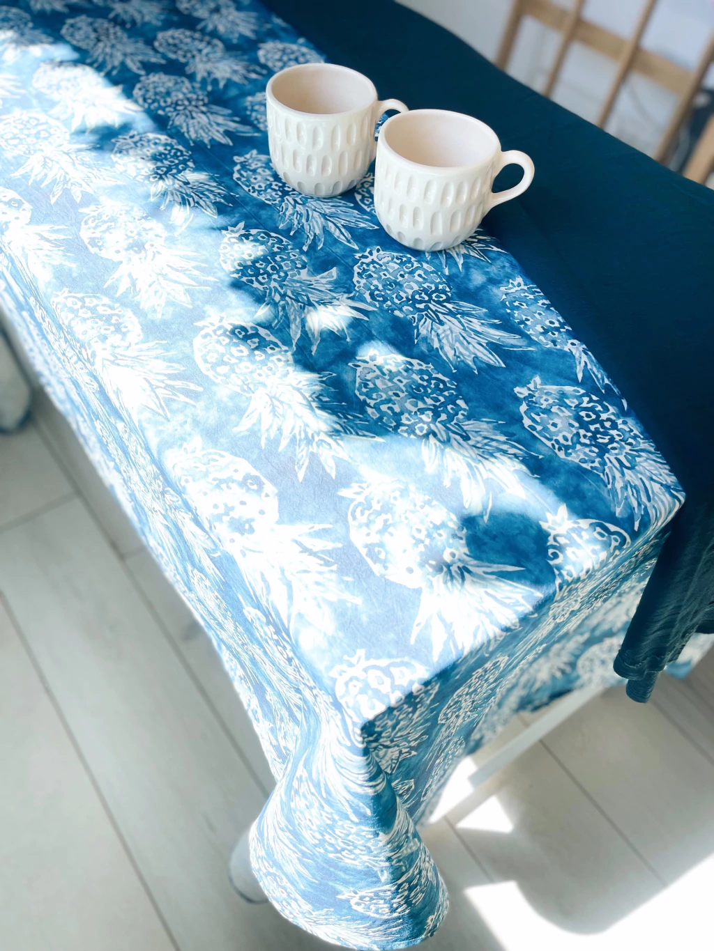 Mantel de tusor 100% algodón base natural, estampa color azulado.