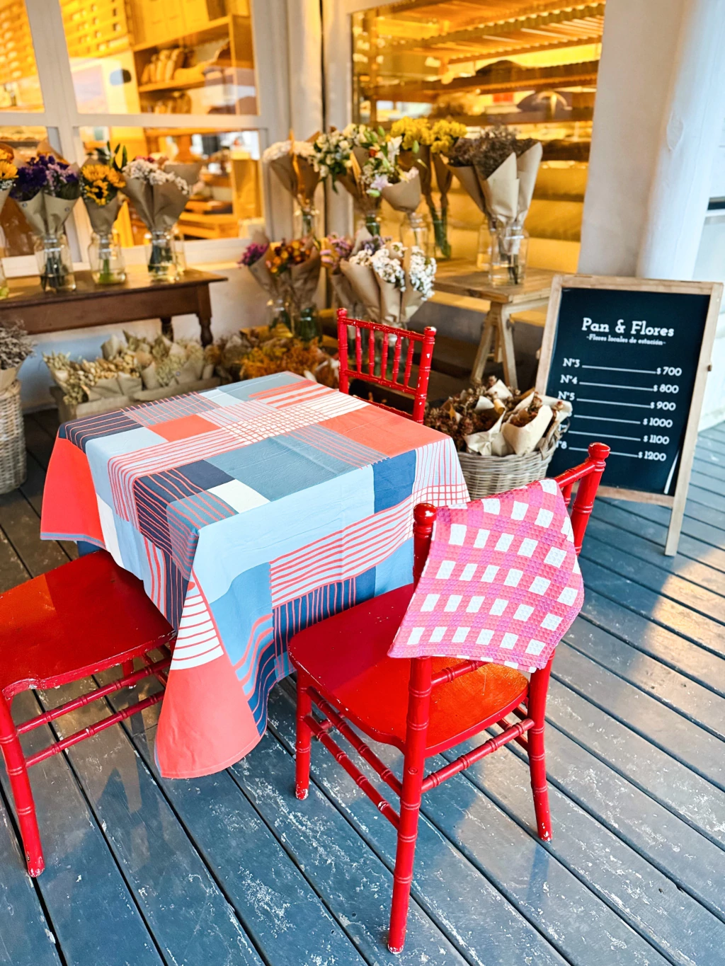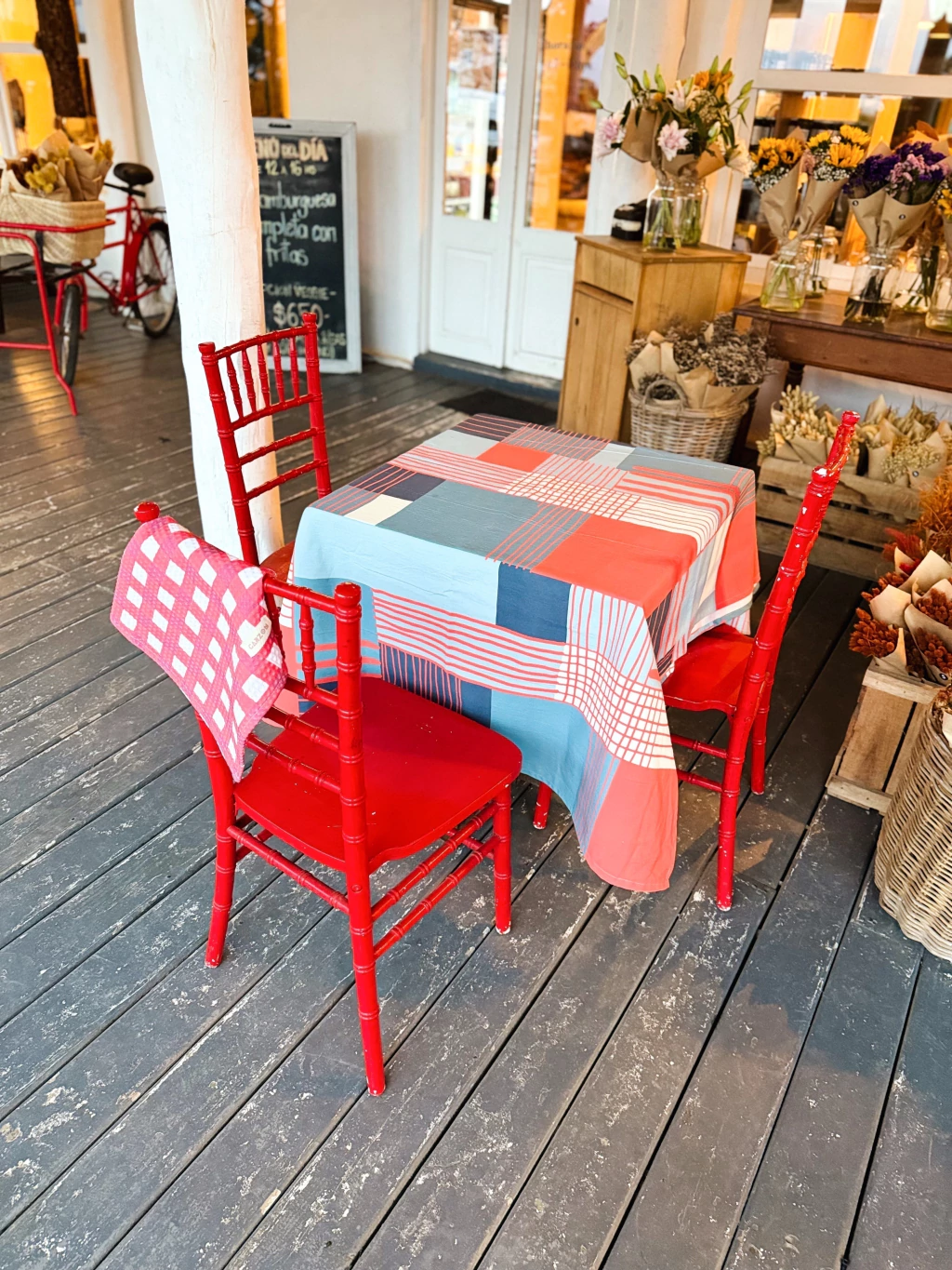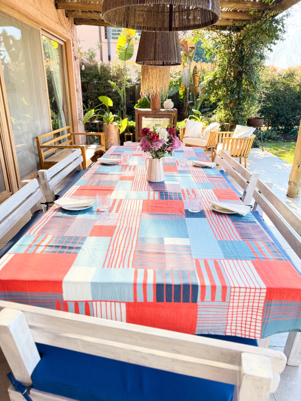 Estampa propia de la marca con diseño de rayas y cuadros colorido.